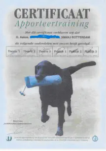 Ik ben ook in het bezit van het diploma apporteertraining